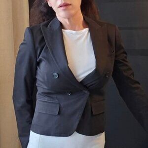 "Theory Double-Breasted Cropped Blazer in Stretch Cotton