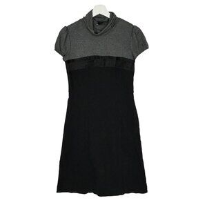 Theory Dress Womens 6 Wool Blend Grey Black Turtleneck Short Sleeve Shift Flaw*