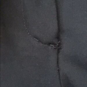1) tiny area left upper leg near inseam that looks like stretched (maybe 1”)