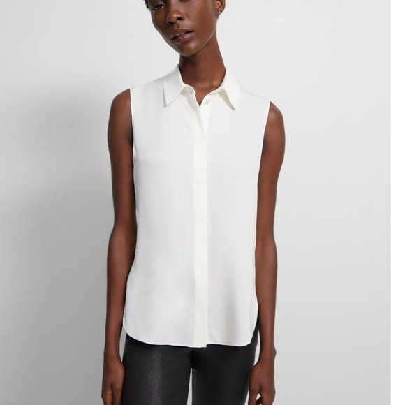Theory Georgette Silk Fitted Shirt Sleeveless in Ivory Size S