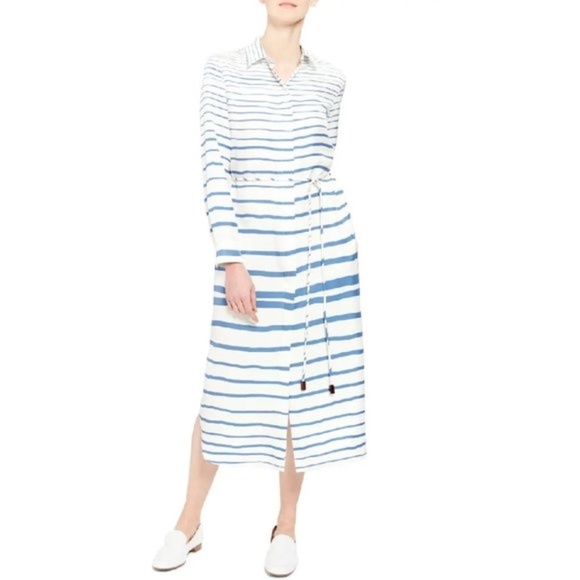 Waves of stripes flow allover this silk dress cut in an oversized silhouette and tied with a slender, metal-tipped belt.