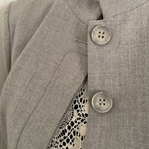 Elegant gray blazer by Theory. Features a sleek design with a modern fit. Perfect for professional settings.