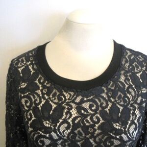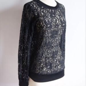Theory Jaidyn sheer lace top. Color: Dark Navy/Black. SIZE: S (armpit to armpit measures 17"). Features: