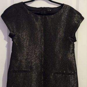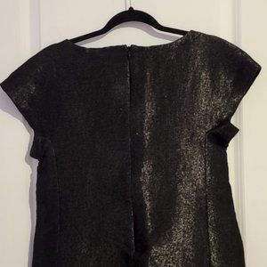 Theory Judyanne Reputation Black / Silver Metallic Wool Blend Shift Dress Size 8