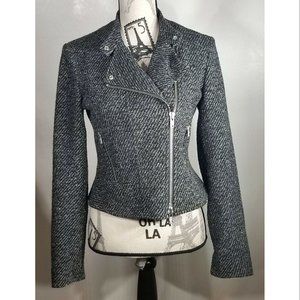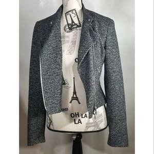 Theory Womens Kinde Tweed Moto Jacket Black & White Sz 4 Asymmetric Zip