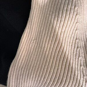 Sophisticated and modern, this Theory Lexianna Evian Stretch Wool Blend Sweater Dress is a versatile piece that transitions seamlessly from work to evening. Crafted from a stretch wool blend, it offers comfort with a flattering silhouette. The ivory and black colorblock design adds a bold, contemporary touch, while the mini length and clean lines showcase Theory’s signature minimalist elegance. Perfect for the office, dinner dates, or special events.