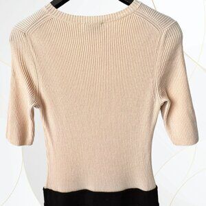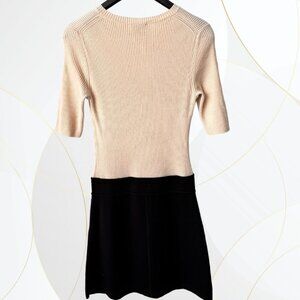 Theory Lexianna Evian Stretch Wool Blend Sweater Dress Colorblock Ivory/Black