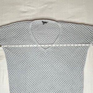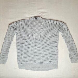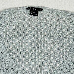 Theory Light Blue / Grey Open-Knit V-Neck Sweater | 100% Cotton | Size Medium