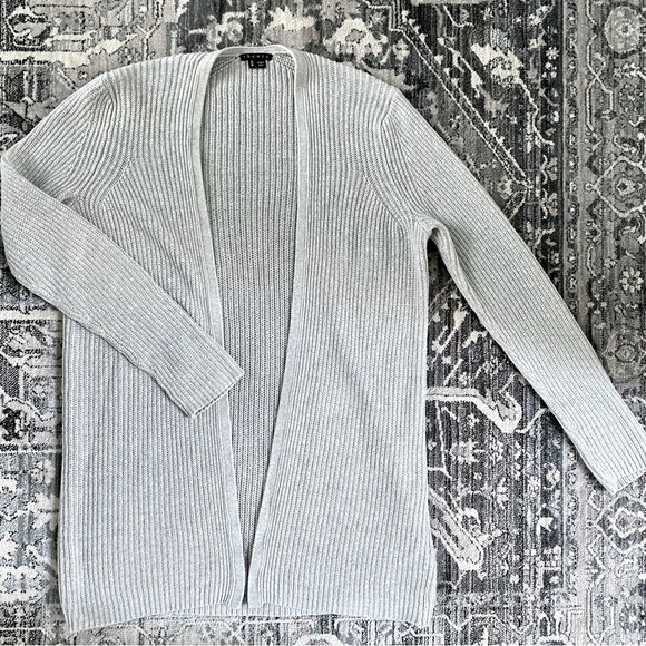 Elegant ribbed cardigan. Open front design. Soft and comfortable fabric.