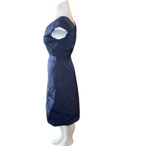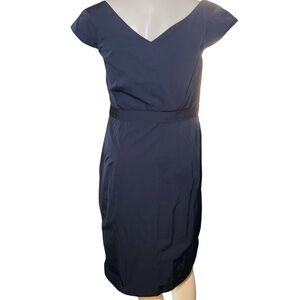 Chic navy midi dress by Theory. Features a sophisticated design with cap sleeves. Ideal for both formal and casual settings.