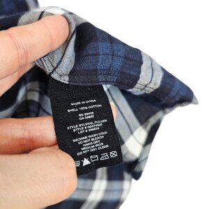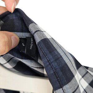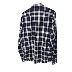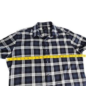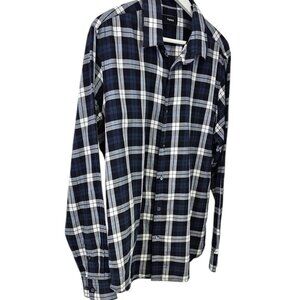 Theory Mens Sylvain Cullen Button Down Shirt, Long Sleeve, Plaid, Blue, Size L