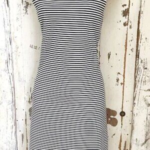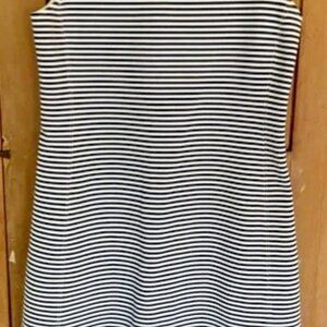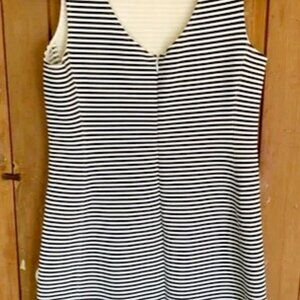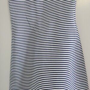Theory navy and ivory striped sleeveless shift dress with V-cut back. Stretch material. Has back zipper closure. Excellent condition