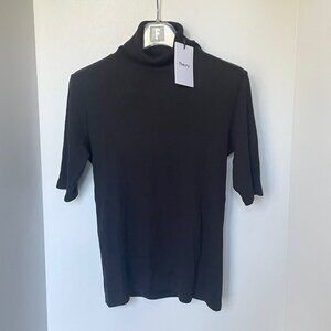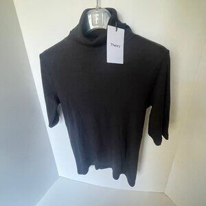 TAGS: theory, naneik, black sweater, ribbed turtleneck, cotton knit, stretch sweater, medium womens, designer sweater, luxury knitwear, fall fashion, winter top, casual sweater, layering piece