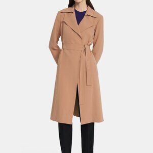 Theory Oaklane Trench Coat in Crepe. Tan colour. Size XS. Excellent condition, worn only a few times. Please ensure to verify sleeve length as I do not recall if the sleeves were adjusted shorter.