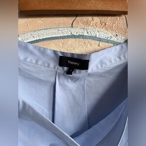 Theory Off-the-shoulder Cotton Poplin Blue Blouse