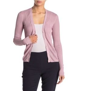 Layer up with a cute cardigan featuring pointelle knit construction and a solid colorway.