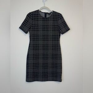Theory Rijik Dress Black Plaid Structured Knit Shift 4 dark academia old money