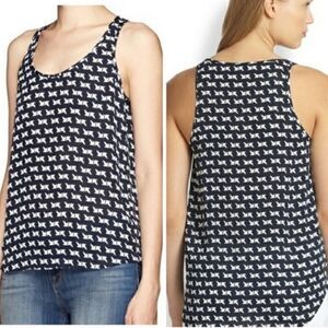 This tank top from Theory in a dark navy and white pattern is such a great simple tank to pair under a blazer or with jeans for a fun comfortable look!
