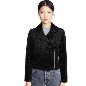 Curly yarns bring tactile charm to an always-edgy moto cut with an easy cropped fit.