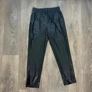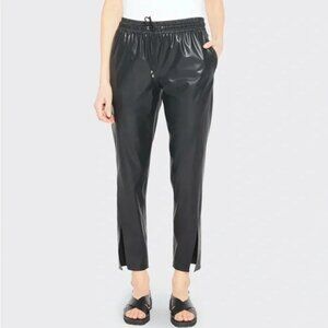 Theory Split hem Ankle Pant Leather Black Slit Pull On Straight Leg size 00