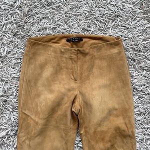 Theory Tan Brown Leather/Suede Pants Mid Rise Sz 0❤️
