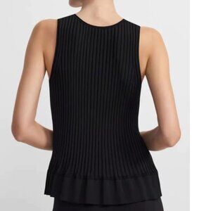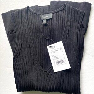 Theory Tank Top Womens Large Black V-Neck Sleeveless Flared Hem Rib Knit Stretch