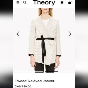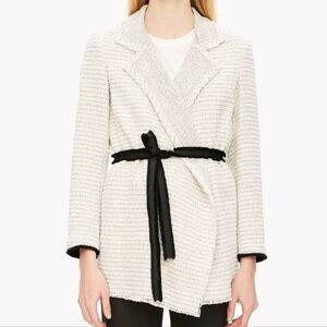 Theory Tweed Relaxed Open Front Pockets Belted Casual Women's Jacket Size XS.