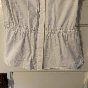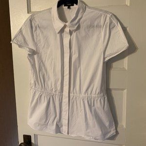 Worn a few time but still in great condition. Had an elastic peplum detail at the bottom. Small cap sleeves. Hidden buttons.