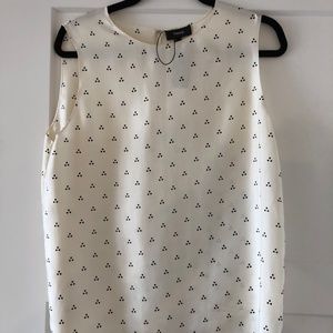 Theory Straight Shell Women's Blouse Large Parchment Vintage Dot Silk Top $275