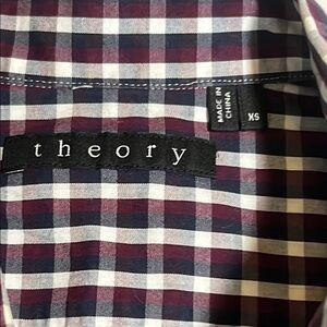 Theory Women's Plaid Button Down Shirt Purple Blue White sz XS