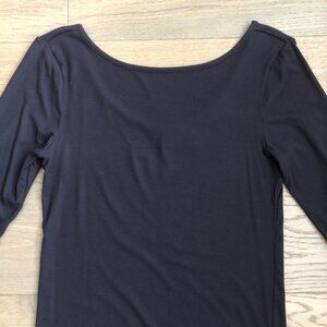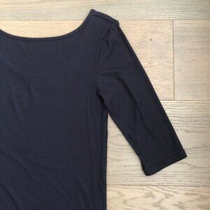 Theory Yorisa Fine Ribbed Boatneck or Scoop Neck Viscose Top Navy Sz M NWOT