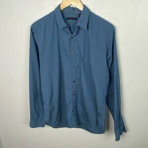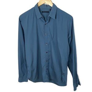 Theory Zack Ps Ostend Blue Button Up Dress Shirt Size Medium Stretch Long Sleeve