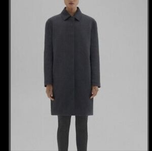 Theory black straight car coat hidden pockets polyester/lycra SZ M