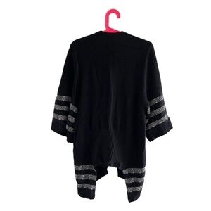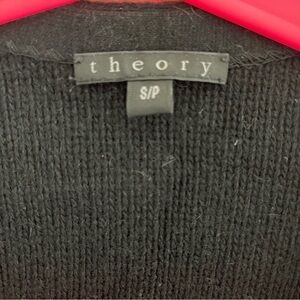 Theory black with white stripes knitted oversized sweater coat size S. This is the perfect piece for throwing over jeans and a tank top or t-shirt. I love the big sleeves and how the back is cropped. Hangs so beautifully. This piece looks effortless and cool.