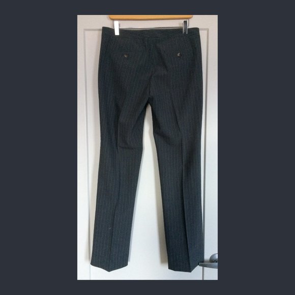 Theory dark grey stripe wool blend trouser size 6. Excellent condition. Hasn't ever been worn. Not a thrifted item, original owner.