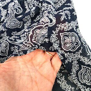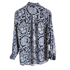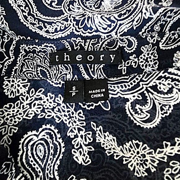 Theory Simara NB navy blue & white paisley 100% silk georgette or crepe blouse in women's size S