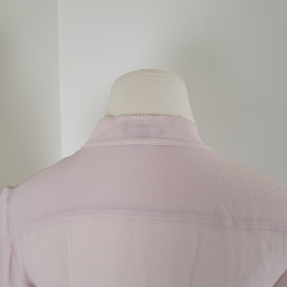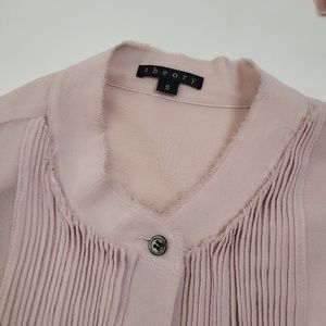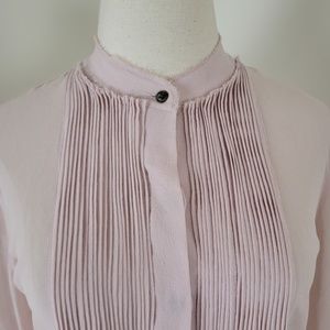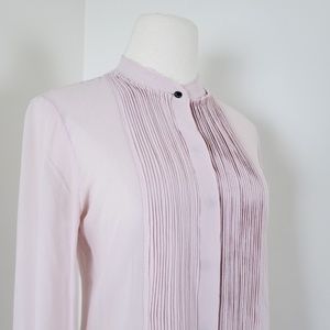 Theory silk candy chic blouse pastel pink sheer ruffles pleats button down