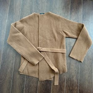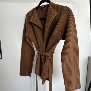 This elegant cozy wrap sweater is made of a thicker, soft wool and cashmere blend.