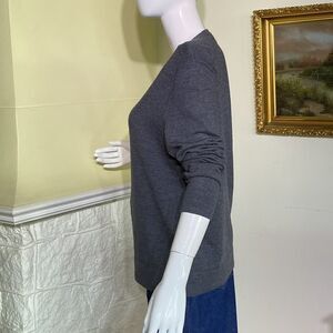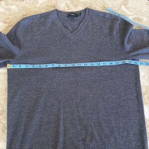 In good preowned condition classic v-neck sweater from Theory. Made of 100% soft merino wool and featuring clean, minimalist loose fitting lines.