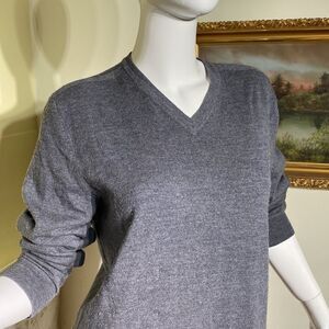 In very good preowned condition beautiful and classic long-sleeve sweater with a V-neck and classic ribbed trims. Perfect for lightweight layering, this sweater is spun from luxurious fine-gauge merino wool from one of Italy’s finest mills. This practical piece is designed to fit your work and life and form the foundation of an exceptional, modern yet timeless wardrobe.
