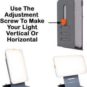 Height and angle are both adjustable! The stand allows for height adjustment and light rotation by loosening the knob on the back of the unit, making it the perfect unit for you.