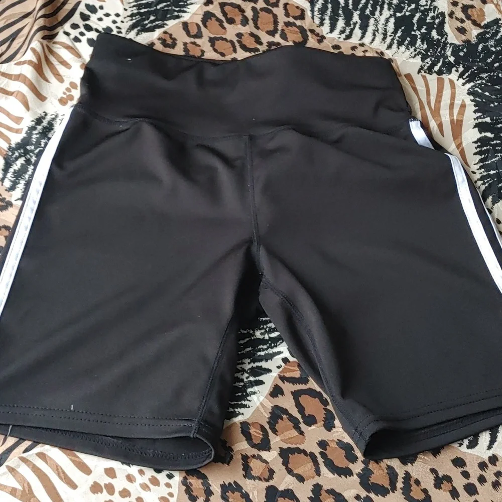 excellent condition. material tag is missing activewear material. waste without pull 13, rise 10.25, inseam 7 and hips are 19.5.