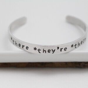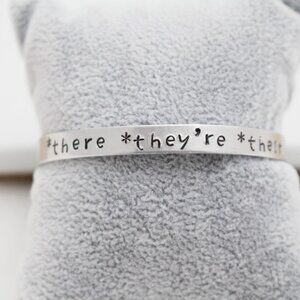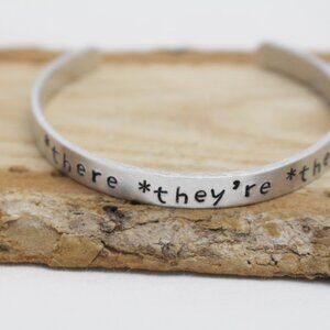 *There *They're *Their - Hand Stamped Anodized Aluminum Bangle - Adjustable
