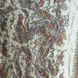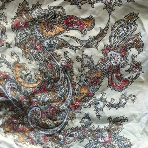 Rolled edges, no tag, small rip in one spot. This is from my Mother's closet and I never saw her wear it.