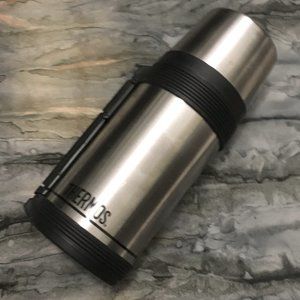 Very good preowned condition, 750ml stainless steel food/drink flask by Thermos®. 20 year old design. Made to last and built like a bullet. Long since out of production.