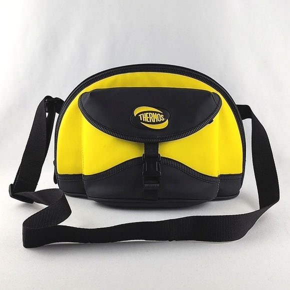Thermos Yellow Black Crossbody Insulated Lunch Bag Adjustable Strap