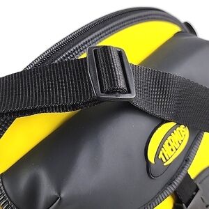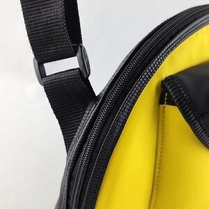 Excellent pre-owned condition, Thermos insulated lunch bag with an adjustable shoulder strap in yellow and black polyurethane.