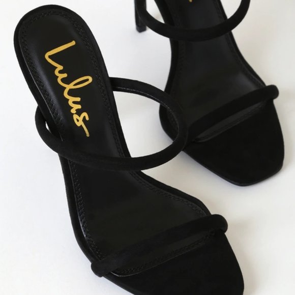 Lulus Exclusive! Having trouble finding the perfect heels to go with your cute outfit? Let the Lulus Theyaa Black Suede Square-Toe High Heel Sandals be your go-to! Soft vegan suede shapes these fun, night out sandals with a square-toe upper, a slender toe strap, and a matching vamp strap. The stiletto heel adds a flirty touch to these cute heels! Slide-on design.