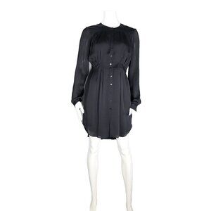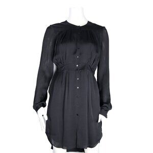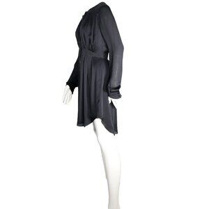 Theyskens' Theory Women's Size Petite Black Dress Silk Satin Long Sleeve Mini