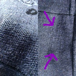High-waisted. Poly-cotton gusset. Slight wear in one section (pictured). Super toasty, but I find them really itchy. I'm autistic, so my skin's extremely sensitive. There's an extreme close-up of the fabric so you can try decide if you'd also find it itchy. I can usually tell by looking. Hope you can too :)